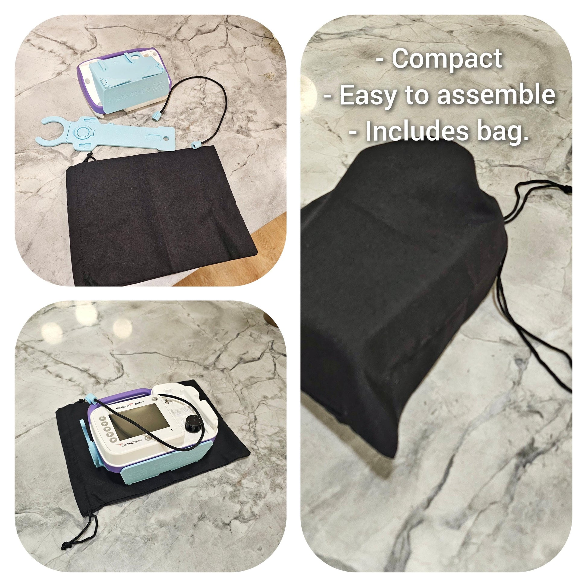 It fits perfectly with the Kangaroo OMNI pump and features a foldable bag holder and legs for easy storage. The removable strap doubles as a handle or hanging loop, while a dedicated slot keeps your battery charger neatly in place. A transport bag is included as a free gift for convenient carrying.