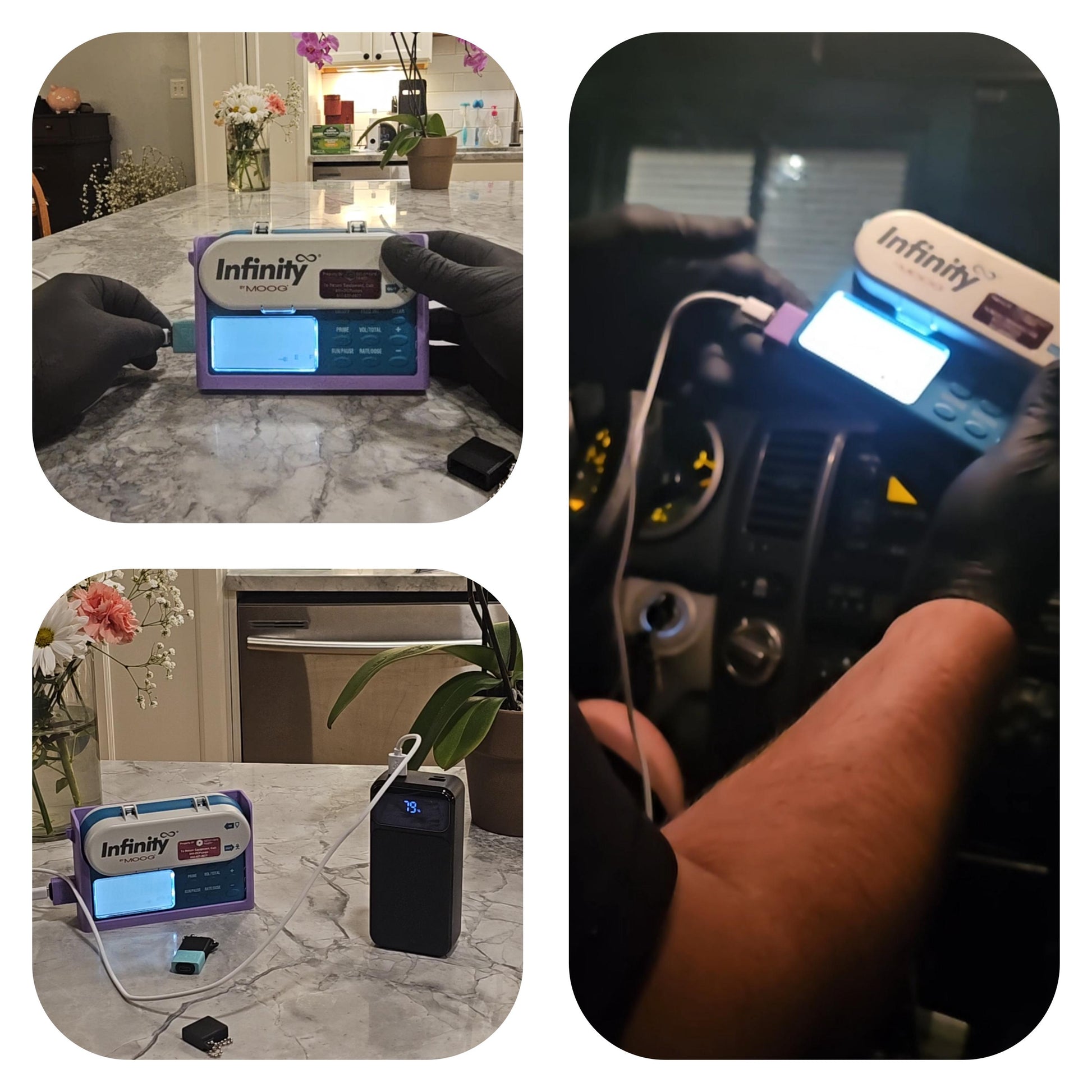 These custom-designed adapters allow you to charge your Infinity Moog pump using modern USB power sources – from phone chargers to power banks, car ports, laptops, and more. Whether you want something small and discreet or full-featured and versatile, we’ve got you covered.